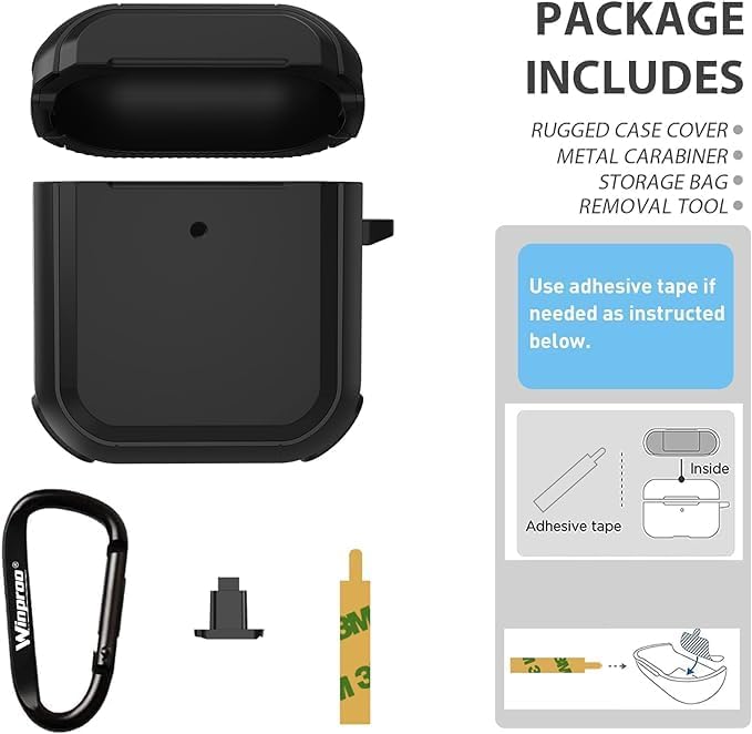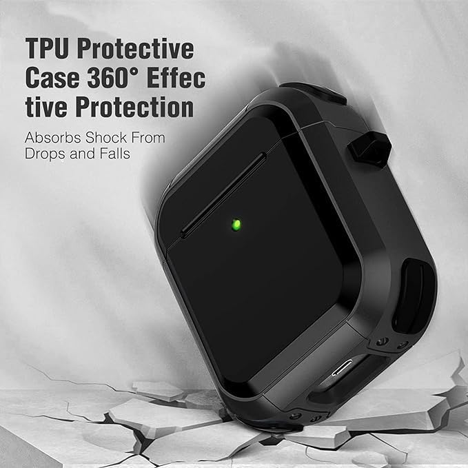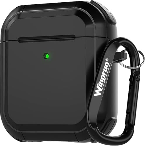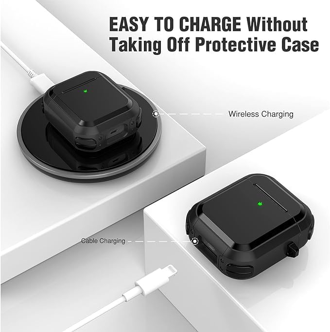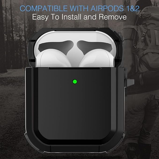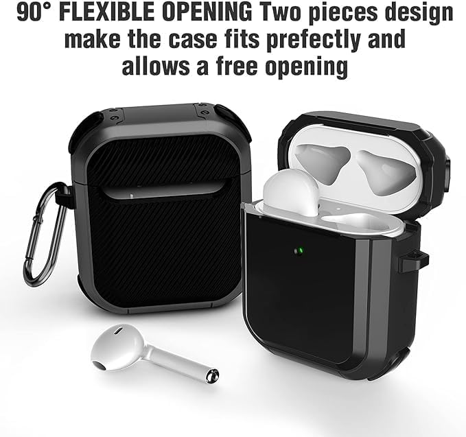 ELMO3EZZ - حافظة حماية ارمور ايربودز الجيل الثاني والاولي مع سلسلة مفاتيح، هيكل عسكري صلب مقاوم للصدمات لكامل الجسم لسماعات والاول [شحن LED مرئي]، أكريليك، 1 و2، رمادي