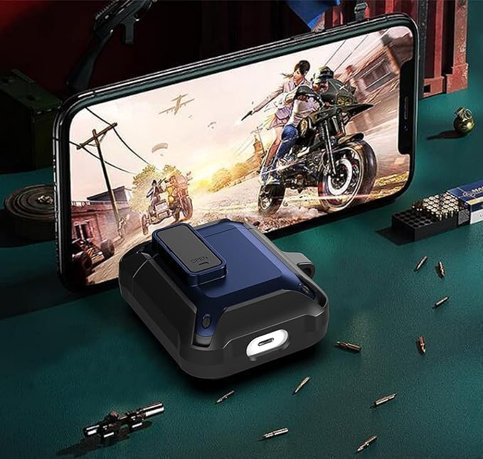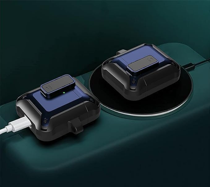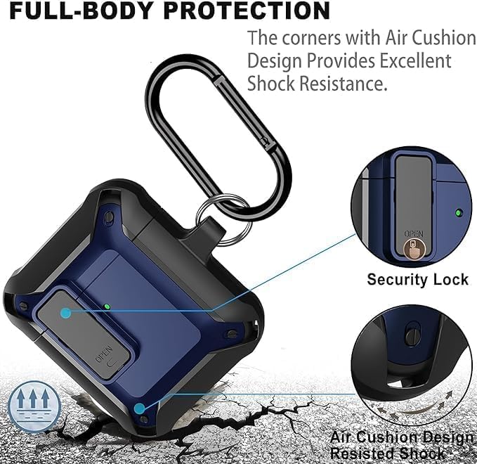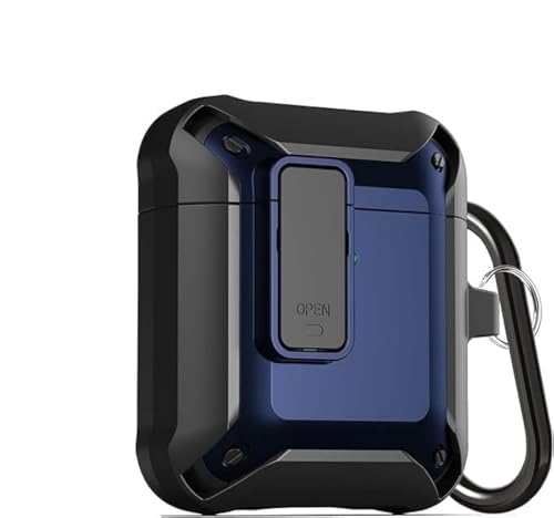 ELMO3EZZ - حافظة ايربود ارمور [قفل آمن] من المعز، حافظة ايربودز، مضادة للصدمات، حافظة اي بود رائعة مصممة لأجهزة ابل اير بود 2 و1 اللاسلكية للرجال والنساء - أسود/ أزرق