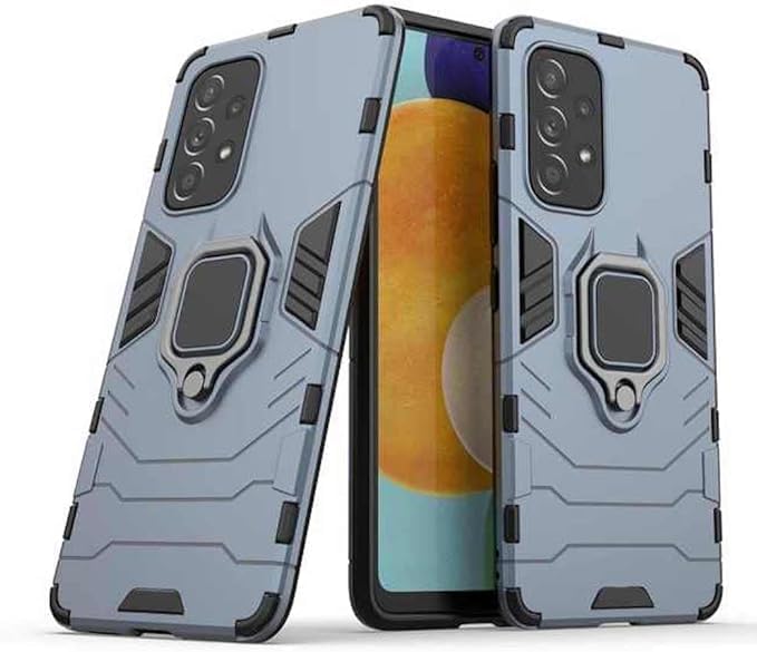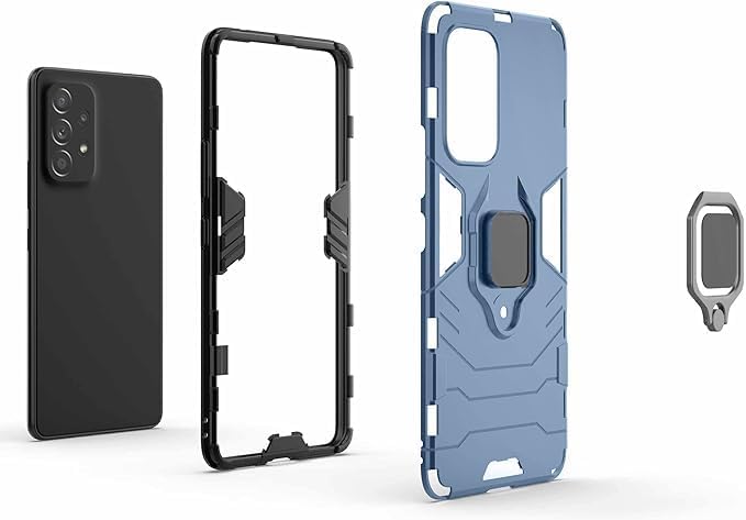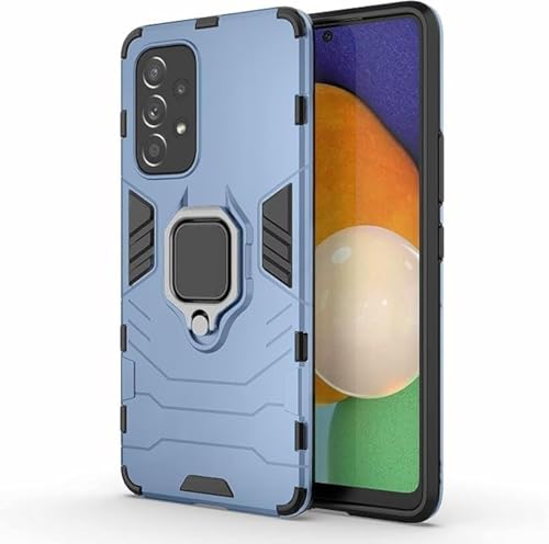 ELMO3EZZ - جراب من البولي كربونات الصلب المقاوم للصدمات مع حلقة معدنية لهاتف سامسونج جالاكسي A53-5G من الموعز - ازرق، مصد