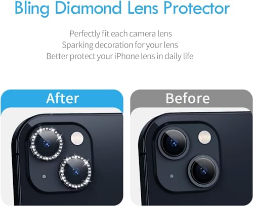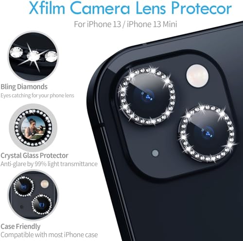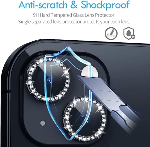 ELMO3EZZ - واقي عدسة كاميرا من الزجاج المقوى HD عالي الدقة المعز الكاميرا مزين بألماس لامع ومقاوم للخدش يستخدم مع جراب الموبايل لموبايل ايفون 13 - ميني ميدنايت باطار ماسي شفاف