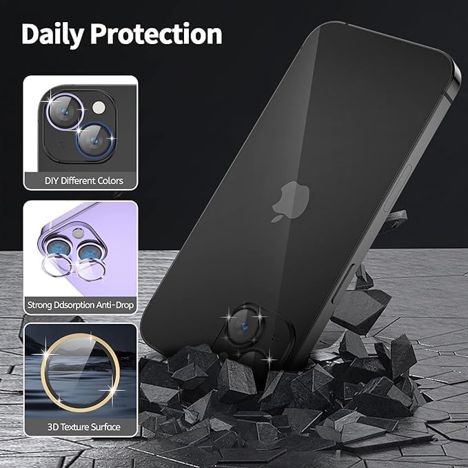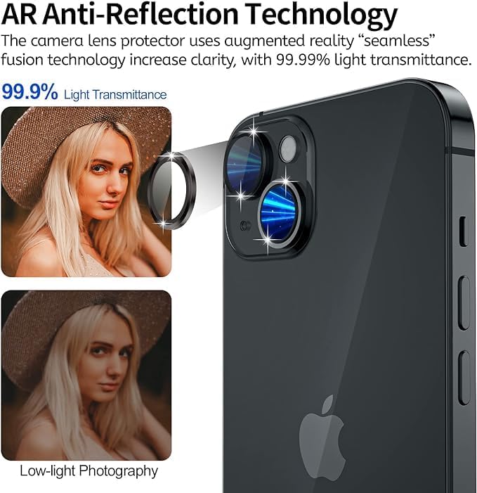 ELMO3EZZ - واقي عدسة كاميرا لموبايل ايفون 14 وايفون بلس 2022 من المعز مصنوع الزجاج المقوى عالي النقاء وحلقة خليط معدني الألومنيوم أزرق