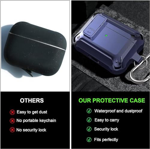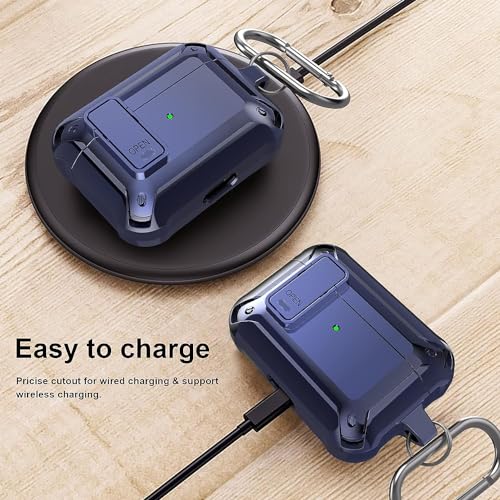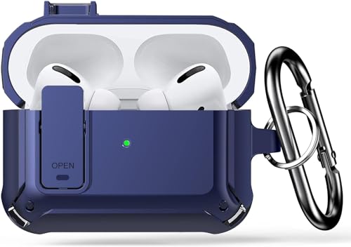 ELMO3EZZ - جراب حماية بغلاف صلب مضاد للصدمات مع غطاء اغلاق من المعز متوافق علبة شحن سماعات اير بودز برو للرجال والنساء لا يتضمن
