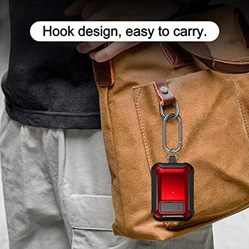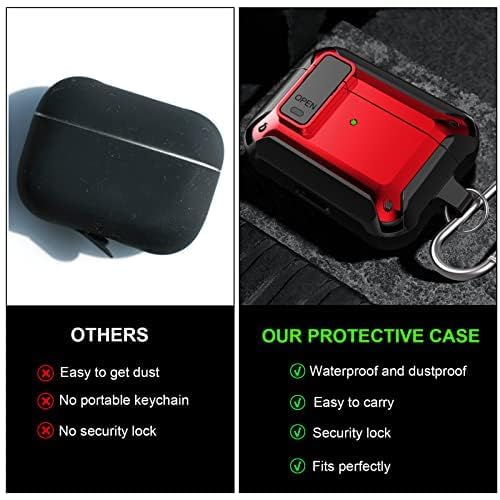 ELMO3EZZ - جراب حماية لسماعات ايربودز برو مع غطاء قفل من الموعز، غطاء واقي متوافق مع جراب ايربودز برو للرجال والنساء، هيكل متين مضاد للصدمات لحافظة شحن ايربودز برو (اسود واحمر)، أكريليك