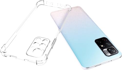 ELMO3EZZ - جراب حماية مرن مصنوع من البولي يوريثين المقاوم للحرارة مع أربع زوايا لموبايل ريدمي نوت 11 شبكة الجيل الخامس 5G / بوكو M4 برو شبكة الجيل الخامس 5G من المعز، شفاف