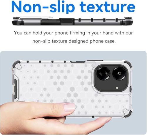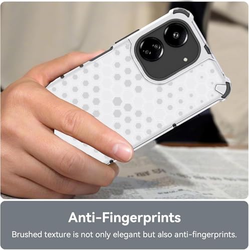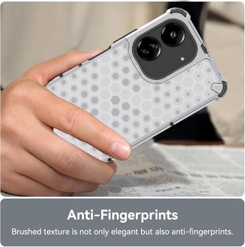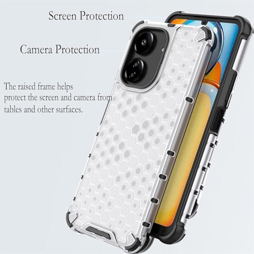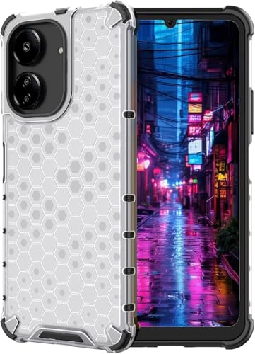 ELMO3EZZ - حافظة حماية شفافة متوافقة مع موبايل ريدمي 13C مضادة للاصفرار ومضادة للخدش بتصميم خلية النحل للصدمات لموبايل شاومي 13C من الموعز ابيض شفاف