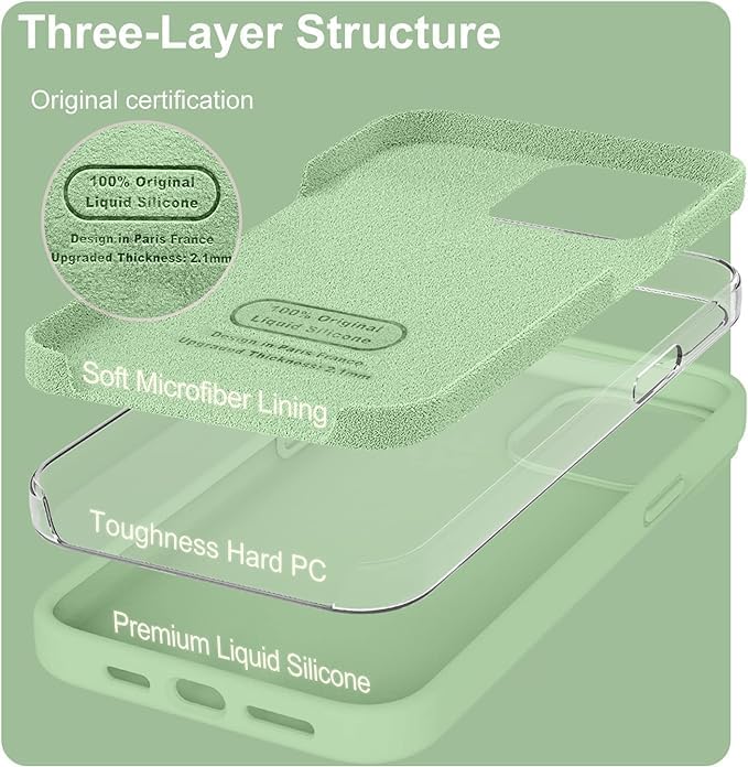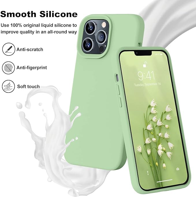 ELMO3EZZ - جراب حماية من السيليكون السائل الفاخر 6.7 بوصة مع [بطانة ناعمة مضادة للخدش المايكروفايبر] كامل المطاط الهلامي متوافق ايفون 13 برو ماكس الموعز - ماتشا المعز