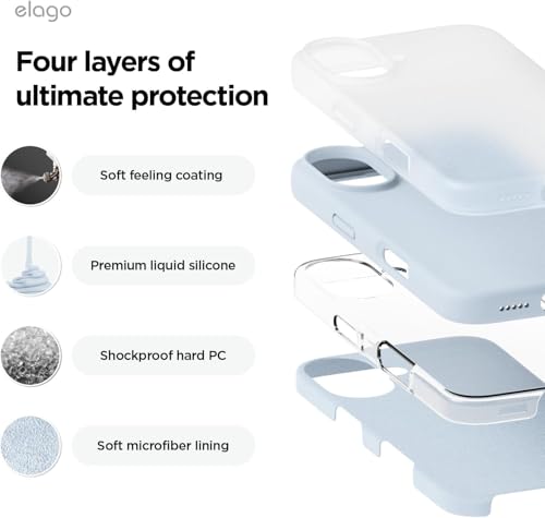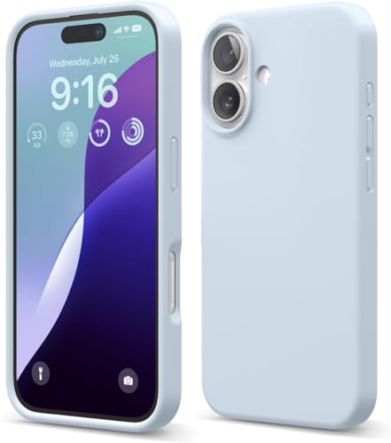 ELMO3EZZ - جراب حماية من السيليكون السائل الممتاز متوافق مع موبايل ايفون 16 غطاء واقي لكامل الجسم رفيع مضاد للصدمات بطانة ناعمة المايكروفايبر مضادة للخدش 6.1 انش ازرق فاتح