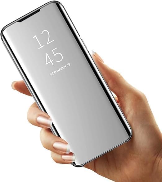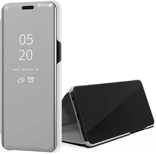 ELMO3EZZ - حافظة حماية متوافقة مع سامسونج A04s للمكياج مراة ذكية فاخرة غطاء قلاب نحيف لكامل الجسم ومضاد للصدمات فضي أكريليك