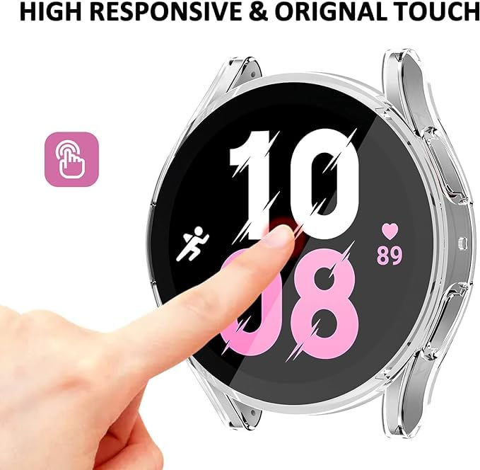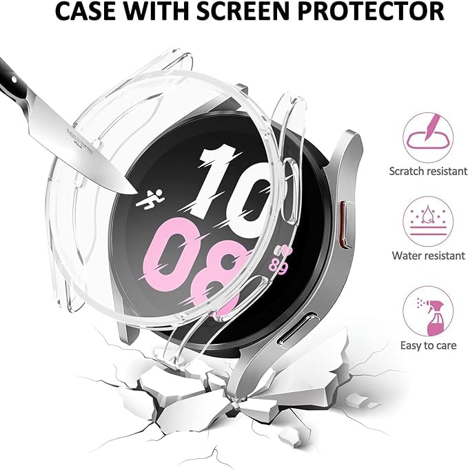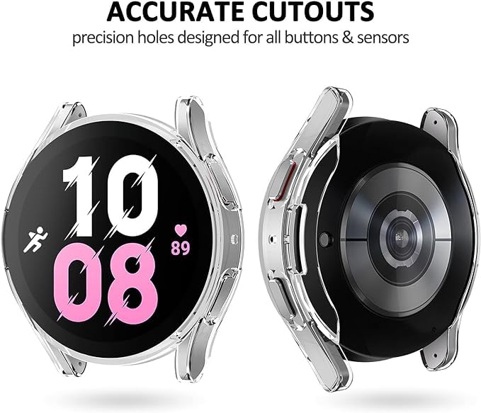 ELMO3EZZ - جراب حماية ناعم مطلي بمادة البولي يوريثين الحراري ومقاوم للخدش مع شاشة حماية متوافق مع ساعة سامسونج جالاكسي 5 LTE مقاس 44 ملم و5 برو مقاس 45 ملم و40/44 ملم من المعز (شفاف)