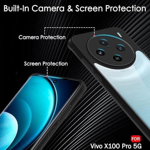 ELMO3EZZ - جراب حماية رفيع مضاد للصدمات من الدرجة العسكرية مضاد للاصفرار متوافق مع فيفو X100 برو 5G من المعز، جراب حماية كامل ممتص للصدمات مع واقٍ لعدسة الكاميرا - أسود