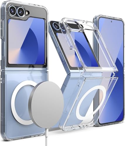 ELMO3EZZ - جراب فليب 6 من الموعز [متوافق مع ماج سيف] مصمم لموبايل سامسونج جالاكسي غطاء جوال شفاف مقاوم للخدش والصدمات - مغناطيسي TPU