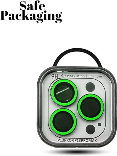 ELMO3EZZ - غطاء - واقي عدسة كاميرا بدرجة 9H مخصص من الموعز مضيئة لموبايل ايفون 13 برو 6.1 انش وايفون ماكس 6.7 جودة ممتازة اخضر لامع .