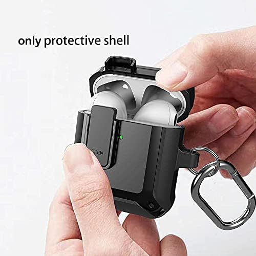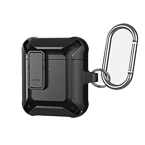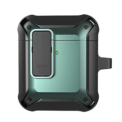 ELMO3EZZ - جراب حماية متين مضاد للصدمات بتغطية كاملة ومؤشر LED متوافق مع الشحن اللاسلكي ومزود بحلقة مفاتيح، متوافق مع سماعات ايربودز 2 و1 من انتونيا، أخضر/أسود 43، من المعز