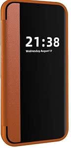 ELMO3EZZ - جراب حماية قابلة للطي جلد صناعي لحماية الهيكل بالكامل مع مسند شفاف مضاد للصدمات وغطاء قلاب من الجلد فائق النحافة المعز لموبايل رينو 11 شبكة الجيل الخامس 5G ليس أصلي بني