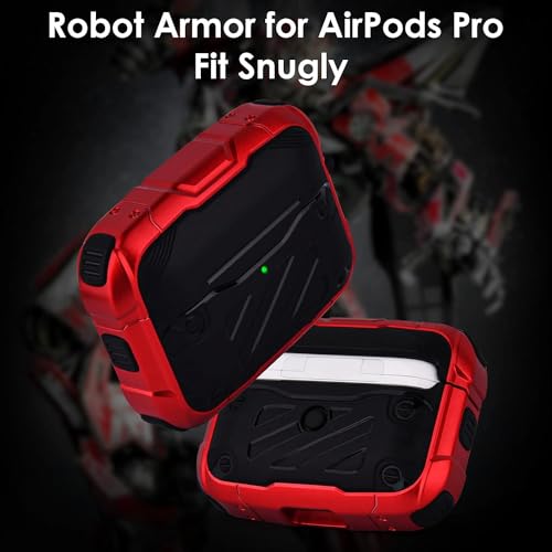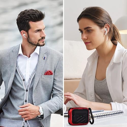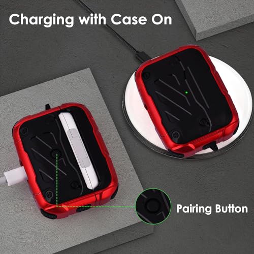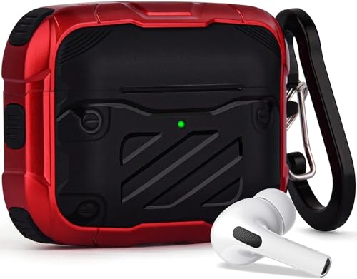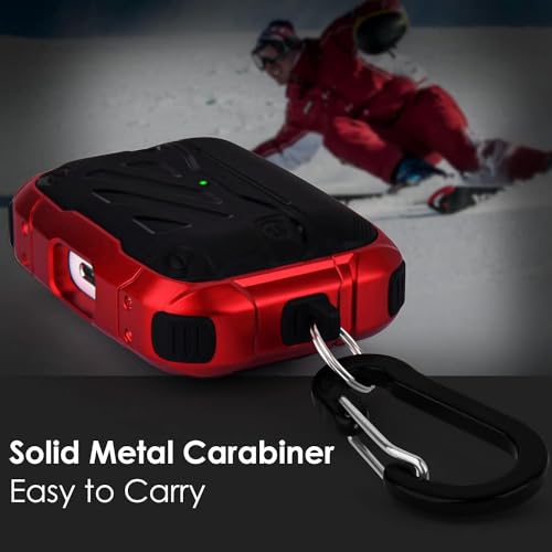 ELMO3EZZ - جراب مضاد للصدمات من البولي يوريثين المقاوم للحرارة لسماعة ايربودز برو الجيل الثاني وايربودز مع حلقة معدنية متوافق ابل 2 2022 وايربود 2019 للرجال والنساء أحمر