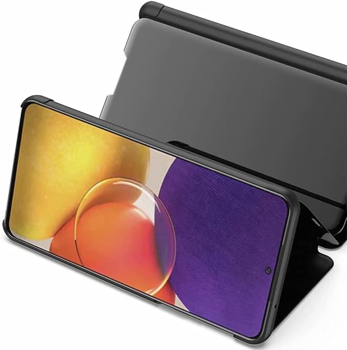 ELMO3EZZ - جراب حماية قلاب لموبايل سامسونج جالاكسي M32 من المعز شفاف بمسند مع طلاء عاكس بتأثير مراية كلير فيو لرؤية واضحة - أسود مواد مختلطة