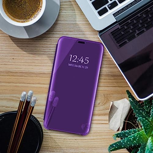 ELMO3EZZ - جراب جلدي رفيع ورفيع قابل للطي مع مسند مضاد للصدمات لموبايل سامسونج جالاكسي A14 5G من المو3ايز متوافق A14 5G مقاس 6.6 انش 2023 أرجواني