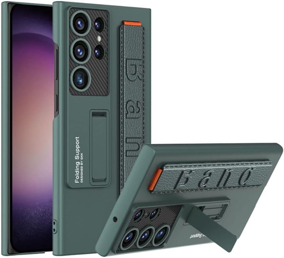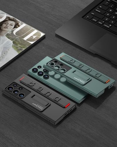 ELMO3EZZ - جراب جالاكسي S22 الترا من المو3EZZ مع مسند وحزام معصم وغطاء رفيع مضاد للصدمات لموبايل سامسونج (أخضر)