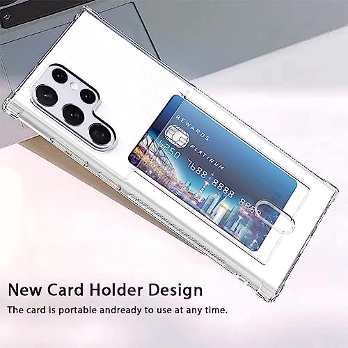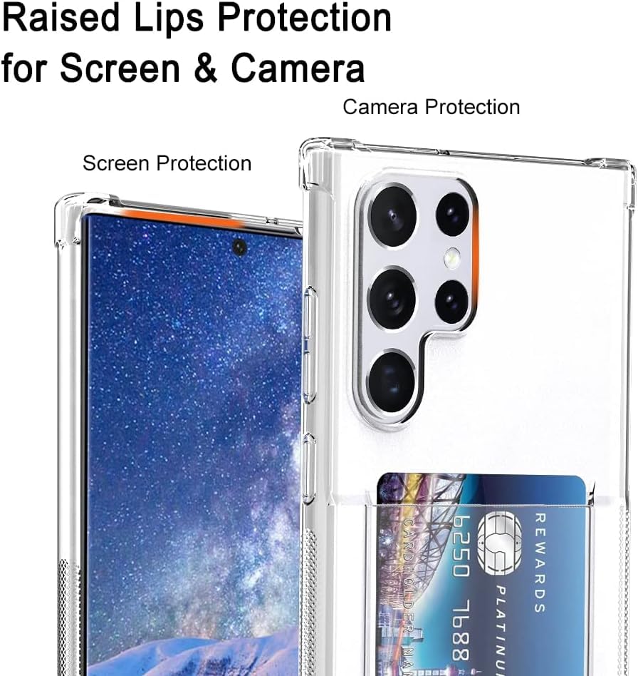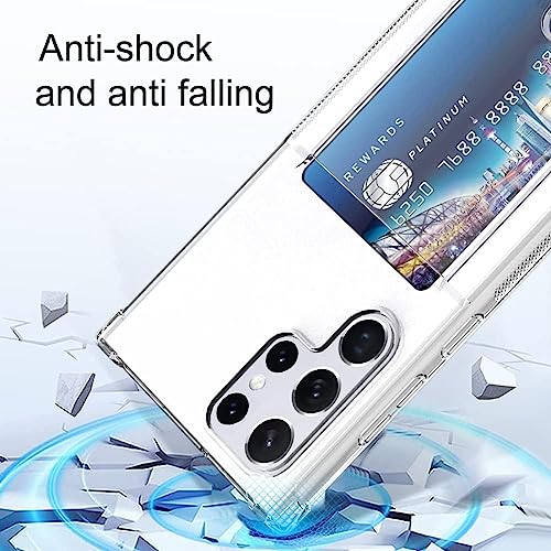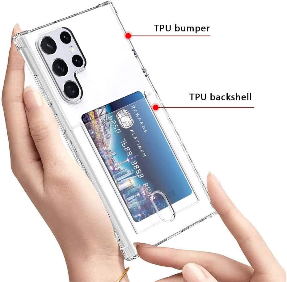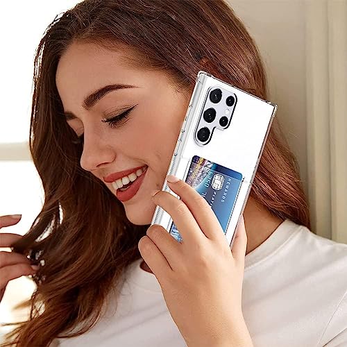 ELMO3EZZ - حافظة حماية فائقة الوضوح لهاتف جالاكسي S22 من الموعز مع حامل بطاقات جيب للبطاقات S22 الترا رفيعة البولي يوريثين الحراري الناعم المقاوم للصدمات سامسونج أبيض