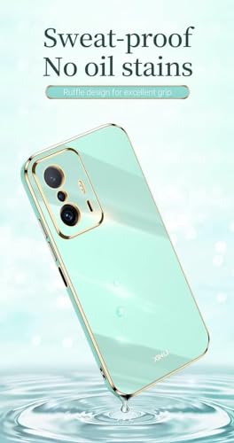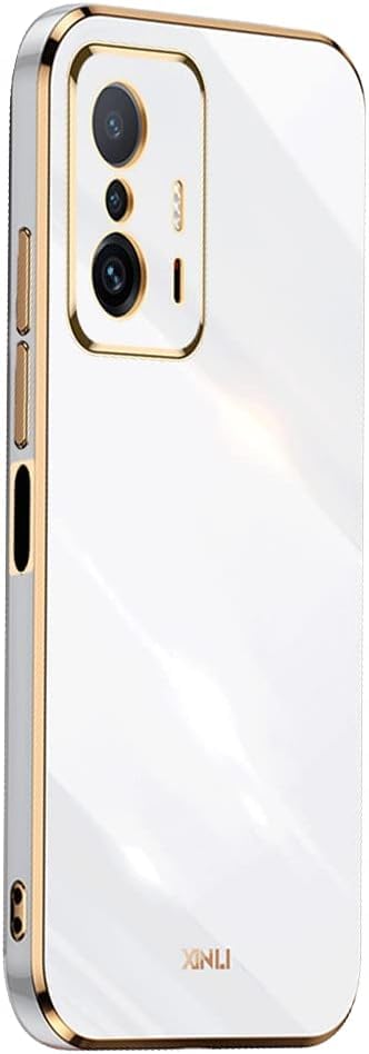 ELMO3EZZ - جراب موبايل من المعز [سلسلة مطلية بالذهب] تصميم حماية لموبايل شاومي 11T برو السيليكون والبولي يوريثين الحراري الناعم مضاد للسقوط والخدوش مطلي بالذهب - أبيض مصد