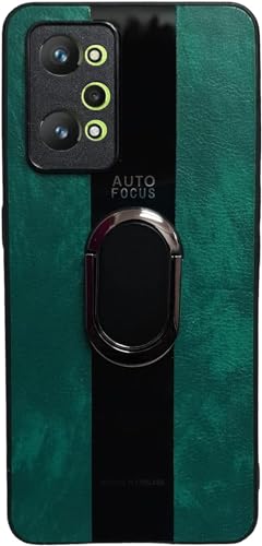 ELMO3EZZ - جراب حماية خلفي مغناطيسي من الجلد الصلب بتصميم مقاوم للصدمات مع مسند وحلقة لموبايل ريلمي GT2 المعز لون أخضر