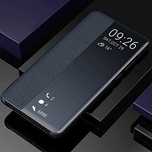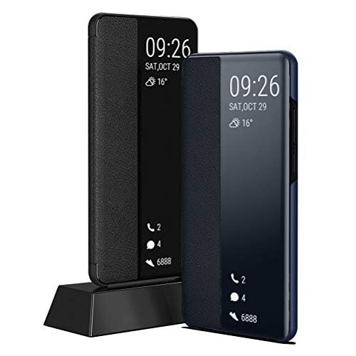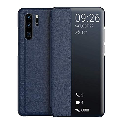 ELMO3EZZ - جراب حماية قابل للطي من الجلد الصناعي مع وظيفة حامل لموبايل هواوي P30 برو 16.43 سم الموعز - أزرق داكن