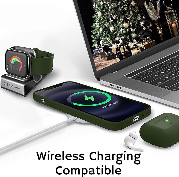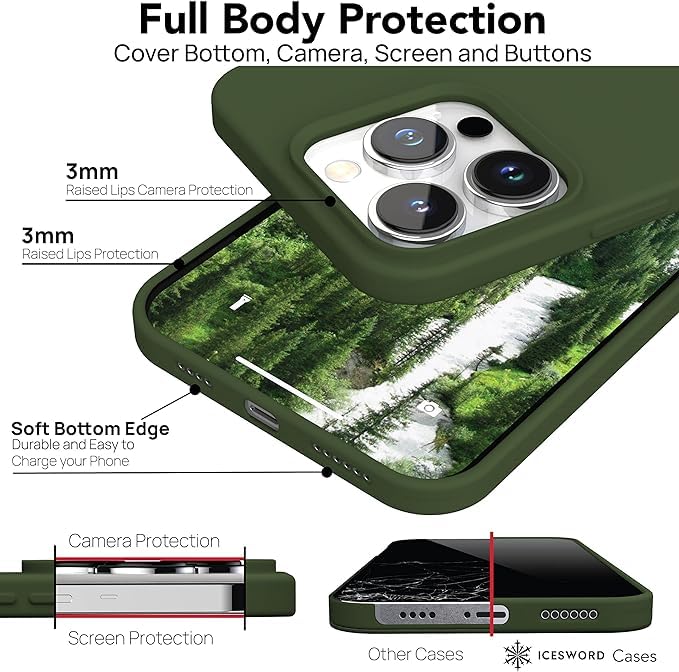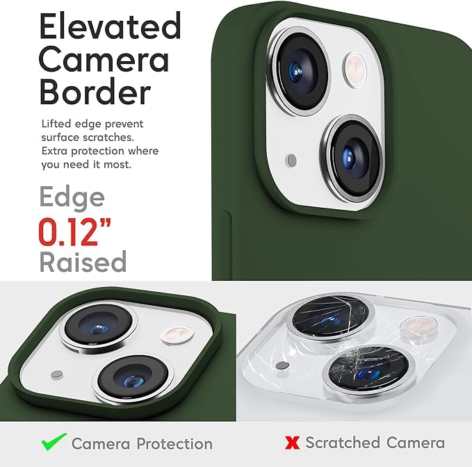 ELMO3EZZ - جراب لموبايل ايفون 14 بلس 2022 مصنوع من السيليكون السائل المعز واقي نحيف ومضاد للصدمات والخدش ببطانة ناعمة المايكروفايبر قياس 6.7 بوصة بلون اخضر فورست داكن