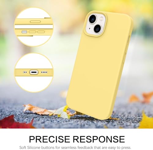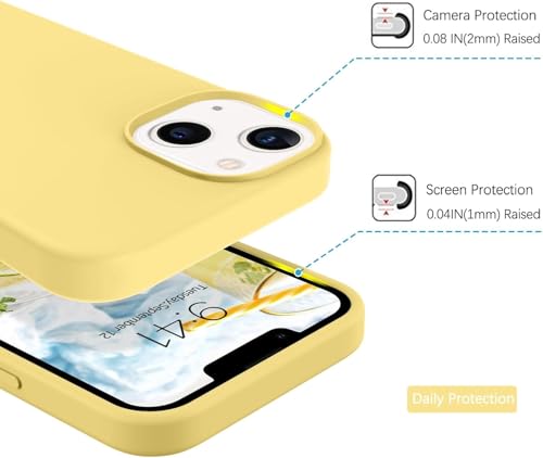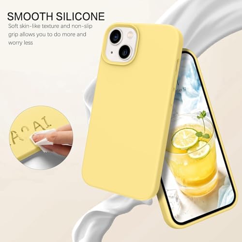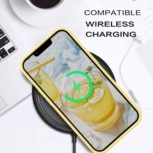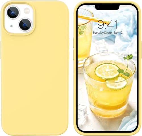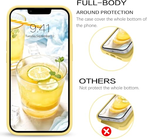 ELMO3EZZ - جراب حماية خلفي من السيليكون السائل لموبايل آيفون 13 ميني (5.4 بوصة)، جراب حماية شاملة: جراب حماية من 3 طبقات مقاوم للخدش (لون أصفر)