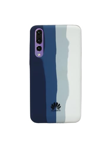 ELMO3EZZ - جراب حماية خلفي ملون وفاخر من السيليكون لموبايل هواوي P20 برو (ازرق وابيض)