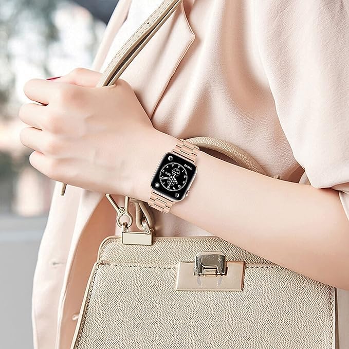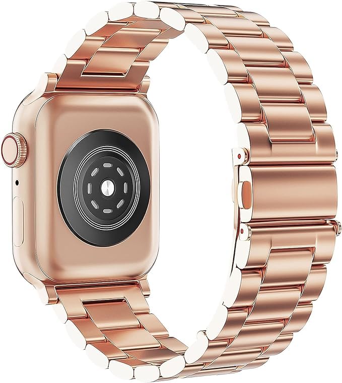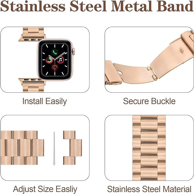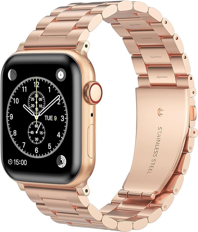 ELMO3EZZ - سوار معدني من الموعز متوافق مع ساعة ابل 45 ملم 41 42 44 38 40 اعمال الستانلس ستيل لساعة سلسلة 8-7-6-5-4-3-2-1-SE للنساء والرجال ملم-44 ملم-45 ذهبي وردي