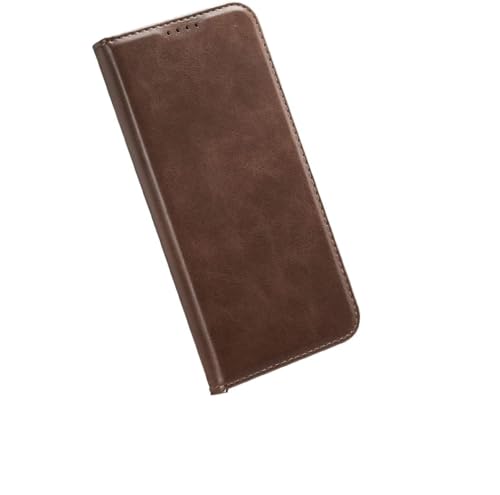 ELMO3EZZ - حافظة حماية قابلة للطي من الجلد الصناعي مع مسند باغلاق مغناطيسي وحامل بطاقات مضاد للصدمات المو3ايز بني غامق .