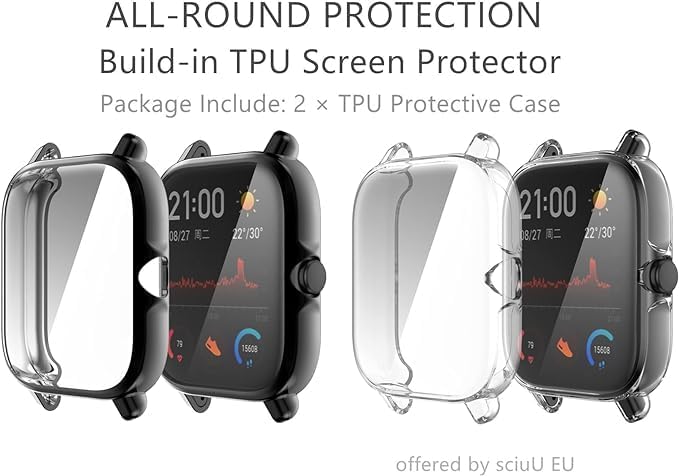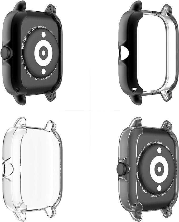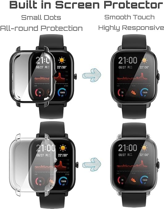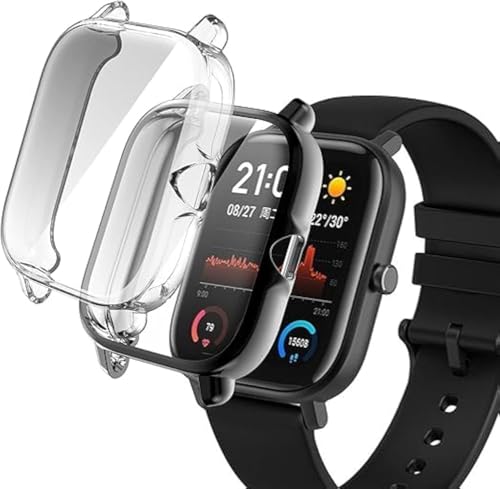 ELMO3EZZ - جراب حماية من المعز متوافق مع ساعة امازفيت GTS3 البولي يوريثين الحراري ومرن باطار دائري كامل ناعم مقاوم للصدمات شاشة - أسود + شفاف عبوتان