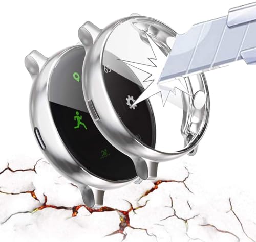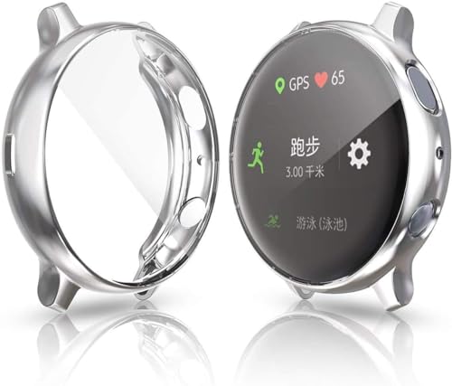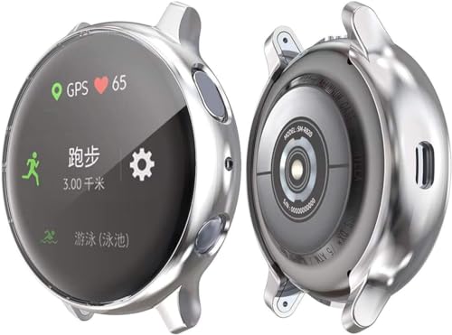 ELMO3EZZ - غطاء حماية كامل مرن باطار مقاوم للخدش من مادة البولي يوريثين الحراري لساعة سامسونج اكتيف 2 بسوار مقاس 44 ملم و40 فضي