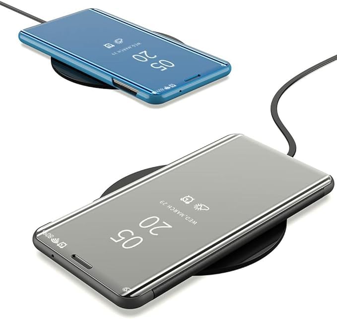 ELMO3EZZ - جراب ريدمي نوت 9S من الموعز، تصميم عاكس شفاف قابل للطي بنمط كتاب فاخر مع مسند لشاومي 9S - 9 برو. مرآة قلابة: اسودELMO3EZZ، سيليكون، للنساء والرجال، لشاومي ريدمي نوت 9S