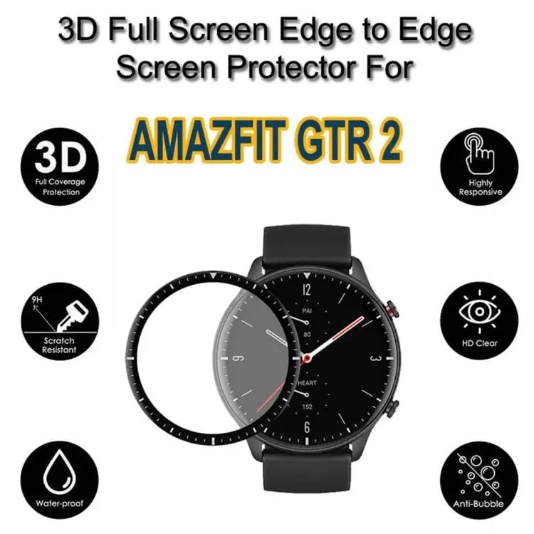 ELMO3EZZ - شاشة حماية من الموعز متوافقة مع ساعة امايزفيت GTR 2/ GTR2e، طبقة حماية ناعمة ثلاثية الابعاد بحواف منحنية [مضادة للخدش] [خالية من الفقاعات] [مقاومة للكسر للغاية] [حساسة للغاية] (ليست زجاج)، أسود