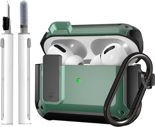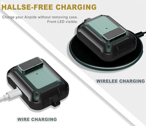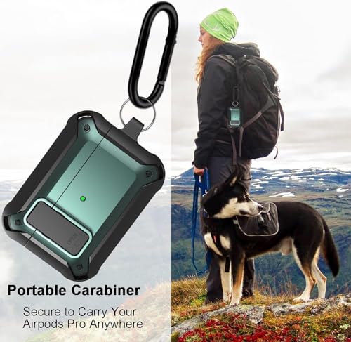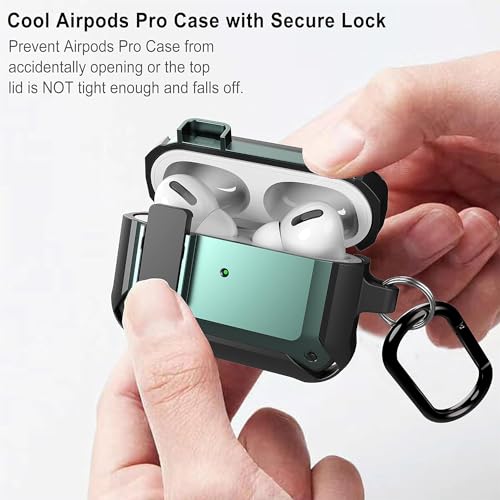ELMO3EZZ - حافظة ايربود برو من ايلمو3EZZ [قفل امن] مقاومة للصدمات فيبونتون مصممة لابل اير بود اللاسلكية للرجال والنساء اسود واخضر أكريليك المعز