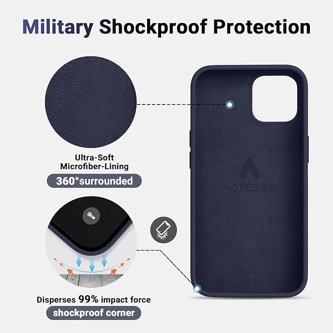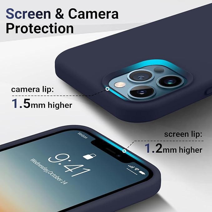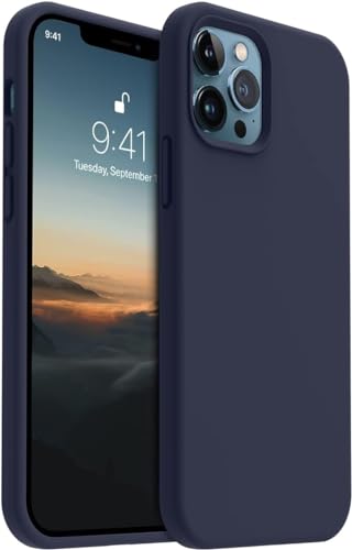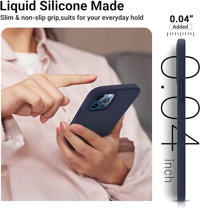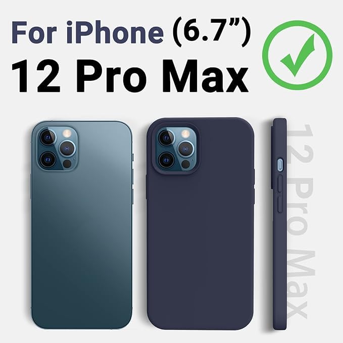 ELMO3EZZ - جراب حماية مضاد للصدمات مصمم لموبايل ايفون 12 برو ماكس موبايل من السيليكون السائل مع [بطانة ناعمة مضادة للخدش المايكروفايبر] كاملة السقوط 6.7 انش ازرق داكن ألياف دقيقة