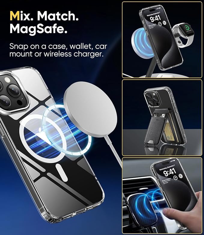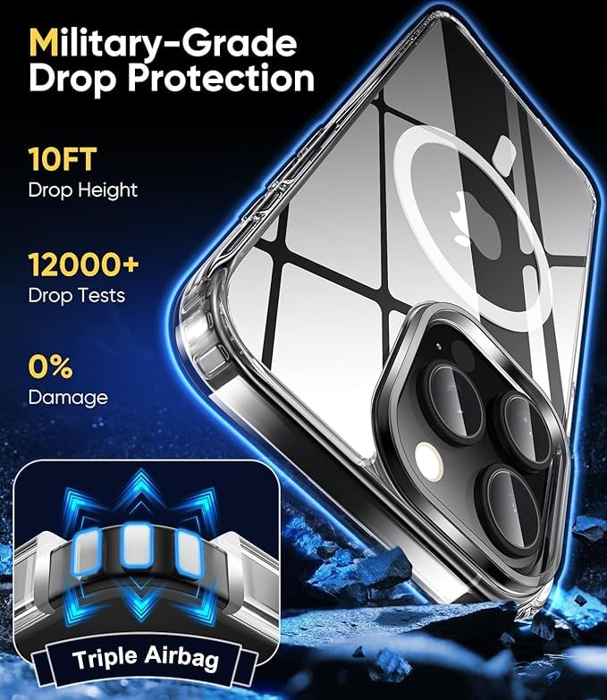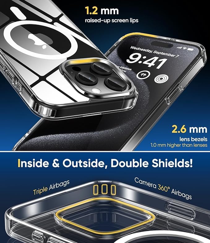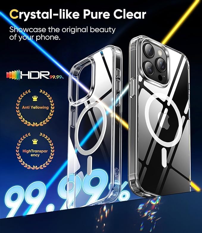 ELMO3EZZ - جراب رفيع قوي مغناطيسي شفاف لجهاز ايفون 14 برو من المعز [شفاف لا يتحول للون الأصفر] [حماية ضد السقوط الدرجة العسكرية] ممتص للصدمات لايفون 2022 مقاس 6.7 بوصة البولي يوريثين الحراري