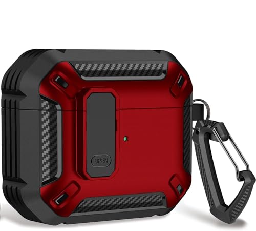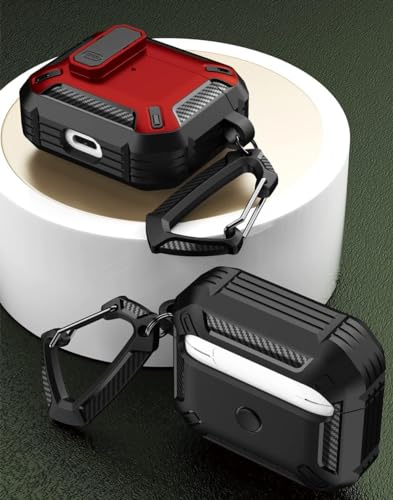 ELMO3EZZ - جراب سماعة مطور بقفل آمن لسماعات إيربودز برو 2 من المعز حافظة حماية متينة بتصميم عسكري رائع مع سلسلة مفاتيح للرجال هيكل صلب مضاد للصدمات لآبل ايربودز 2019 - ايربود - أسود-أحمر
