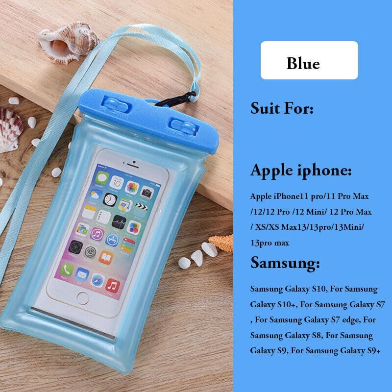 ELMO3EZZ - جراب موبايل عالمي مقاوم للماء بتصنيف IPX8 لمقاومة المياه والغبار للاستخدام تحت الماء مع حبل قصير، من أساسيات السفر بتصميم محكم الغلق مناسب لمعظم الموبايلات (بلون أزرق غامق) من المُعز، لشاومي ريدمي