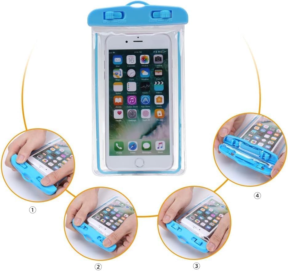ELMO3EZZ - حافظة جوال مقاومة للماء بتصنيف IPX8 لمقاومة المياه والغبار، شنطة جافة تحت الماء مع حبل قصير مقاوم للماء من المعز، غطاء جوال اساسيات السفر، حافظات جوال محكمة الغلق لمعظم الموبايلات (وردية)، زهري