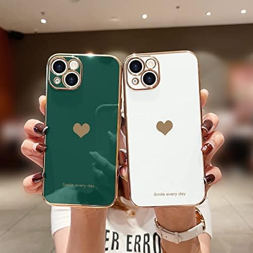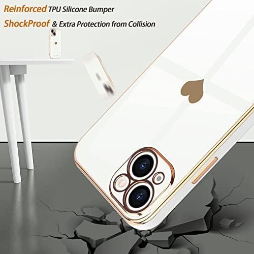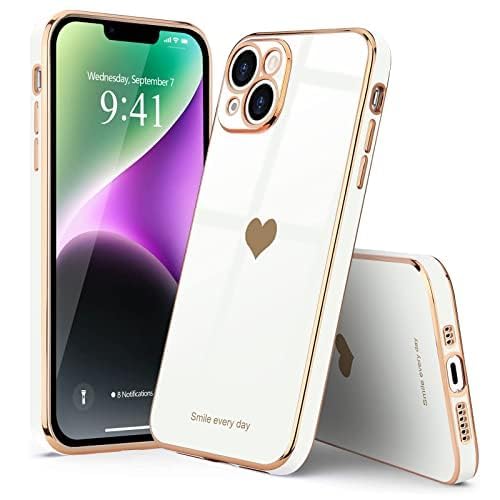 ELMO3EZZ - جراب خلفي مضاد للصدمات من السيليكون الناعم مع حافة مرتفعة لحماية الكاميرا مطلي كهربائيا بالبلينج تصميم قلب لطيف للبنات والنساء متوافق موبايل ايفون 14 برو المعز- لون أبيض