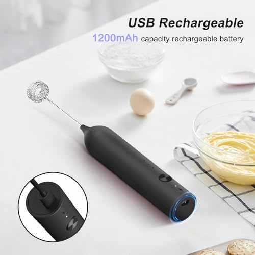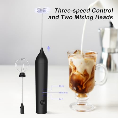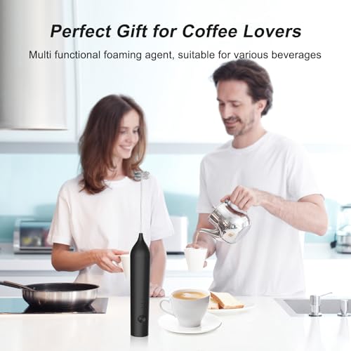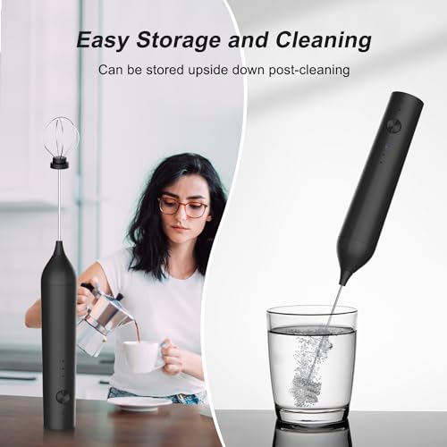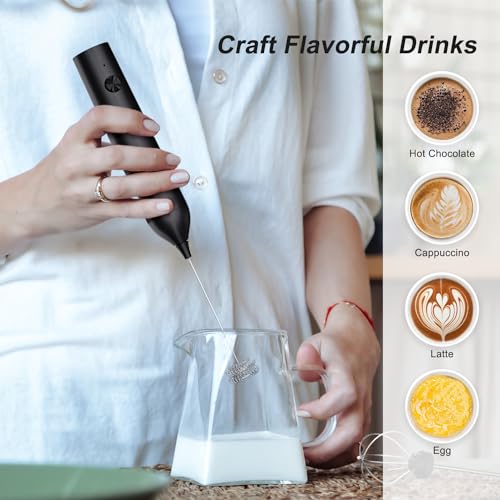 ELMWAY - مجموعة خفاقة حليب كهربائية من إلمواي، خفاقة حليب كهربائية يدوية لل ماتشا والقهوة - أسود