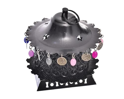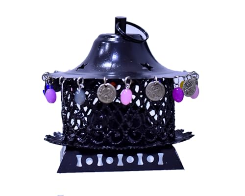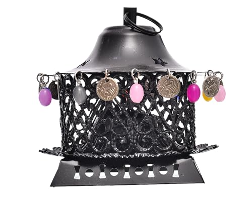 Elnada - فانوس فورج بتصميم فريد لتزيين المنزل والفناء واحتفالات رمضان من الندى، أسود لامع