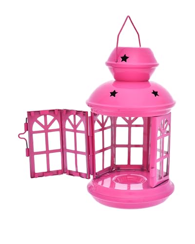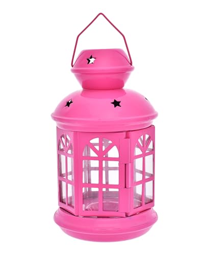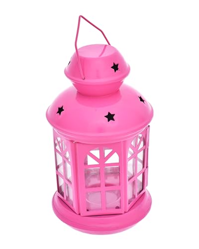 Elnada - فانوس سداسي بتصميم فريد لديكور المنزل والفناء واحتفالات رمضان من الندى - لون فوشيا