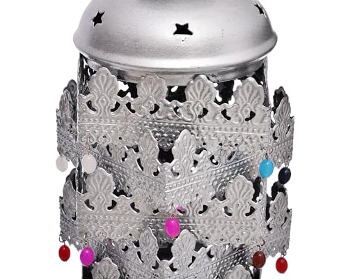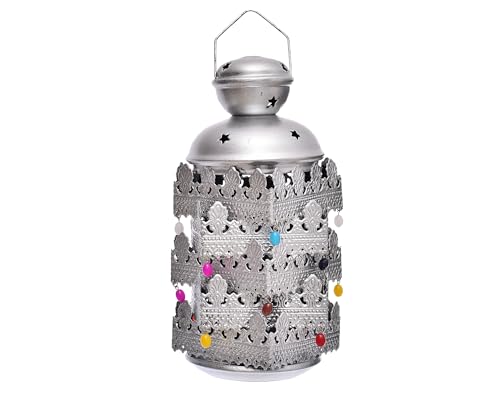 Elnada - فانوس جامبو بتصميم إسلامي فريد لديكور المنزل والفناء واحتفالات شهر رمضان من الندى - فضي