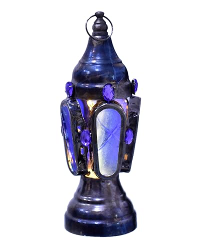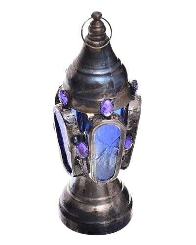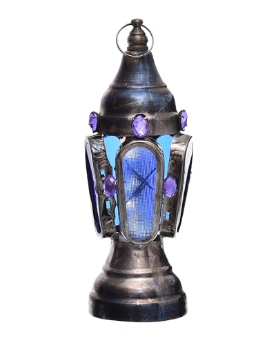 Elnada - فانوس صغير مصنوع من المعدن والزجاج بتصميم رائع لديكور المنزل والفناء واحتفالات رمضان من الندى، كحلي