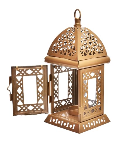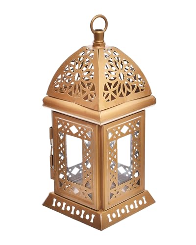 Elnada - فانوس مربع بتصميم إسلامي لديكور المنزل والفناء واحتفالات رمضان من الندى - ذهبي