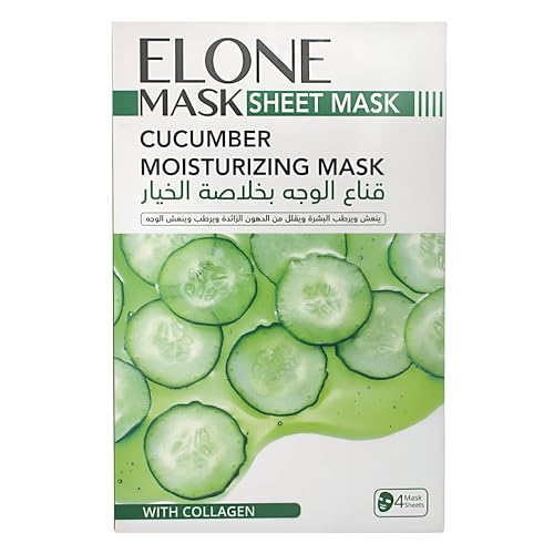 Elone - قناع ورقي مرطب بخلاصة الكولاجين الطبيعية بنسبة 100% - 4 ورقات من ايلون