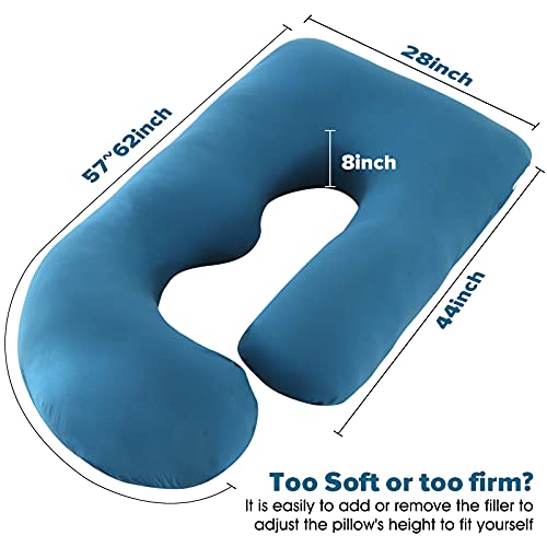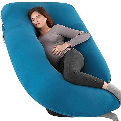Elover - مخدة حمل لكامل الجسم علي شكل U للنوم مع كيس تبريد قابل للازالة للنساء الحوامل من الوفر (60 بوصة، جيرسيه بلون ازرق رويال)، قماش جورسيه
